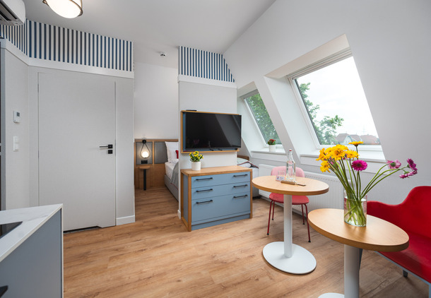 Superior Suite to stylowy, apartament zaprojektowany z myślą o wygodnym pobycie dla 2–4 osób. Przestrzeń została podzielona na dwie strefy — przytulną sypialnię oraz salon z rozkładaną sofą, idealny do wypoczynku w ciągu dnia lub dodatkowego spania.W sypialni znajduje się wygodne łóżko podwójne z wysokiej jakości materacem, a na życzenie. Duże okna oraz starannie dobrane oświetlenie nadają wnętrzu wyjątkowego klimatu, idealnego zarówno na dłuższy pobyt, jak i krótki city break.Każdy apartament położony jest na piętrze odrestaurowanej, historycznej kamienicy z windą — w samym sercu Sopotu, zaledwie kilka kroków od najważniejszych atrakcji miasta.W łazience Goście znajdą przestronny prysznic, miękkie ręczniki oraz zestaw kosmetyków hotelowych.Wyposażenie i udogodnienia: